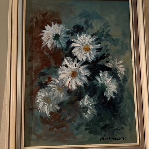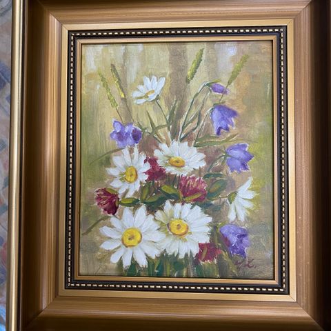 Kaunis kultalehyksinen näyttävä kukkataulu, jossa kultaiset kehykset. Kehystetty taulukaupassa. Koko 63x86