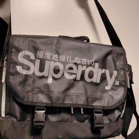 Pari kertaa käytetty Superdryn vyölaukku. Kaksi vetoketjutaskua.