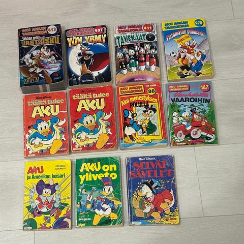 18 kappaletta Aku Ankan parhaita sarjakuvakirjoja.