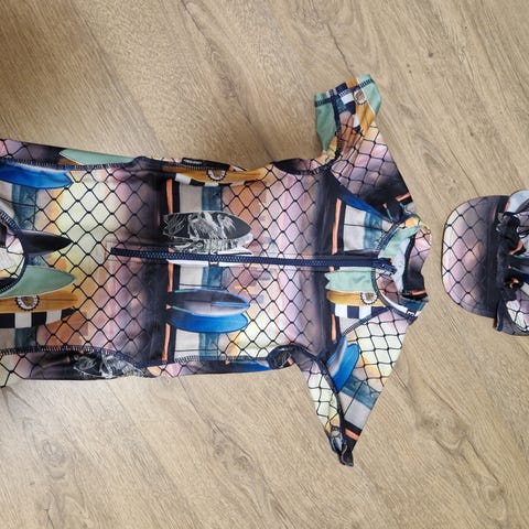 Kuin uusi molo uimapuku ja hattu koko 98)104