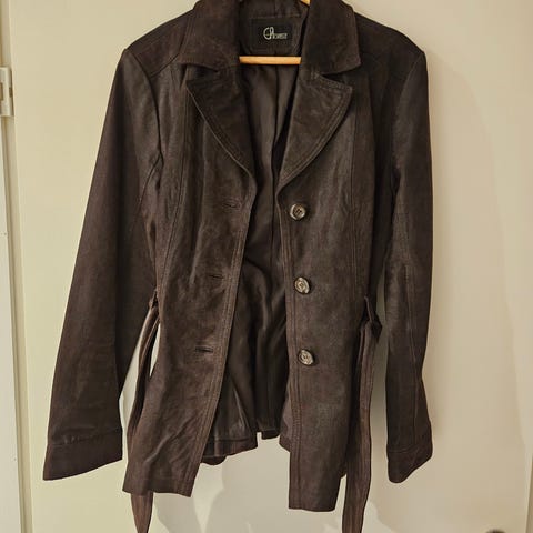 Myydään värikäs mokkanahkatakki, koko 38. Takissa kullatut nepparit