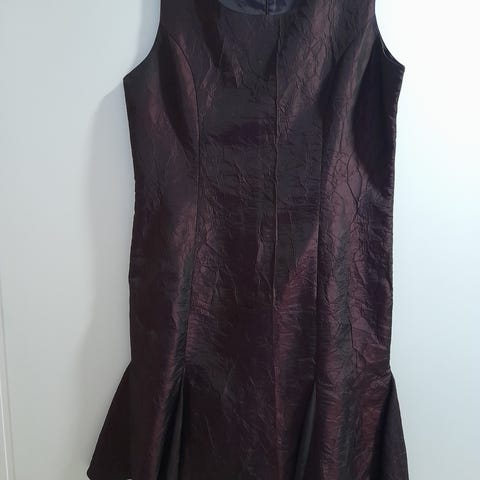 Trendy Look polvipituinen juhlamekko. Koko 44. Vastaa mielestäni pienempää katso mitat. Hutiostos netistä, edellisellä ollut kerran käytössä. Ostettu Haloselta. Piilovetoketju takana. Vuoren helmassa tylliä. Olkaimille paikat. Olkaimet saa mukaan, mutta toisen olkaimen kiinnityshakanen hajonnut. Siistikuntoinen. Pieniä langannousuja huomasin kankaassa.