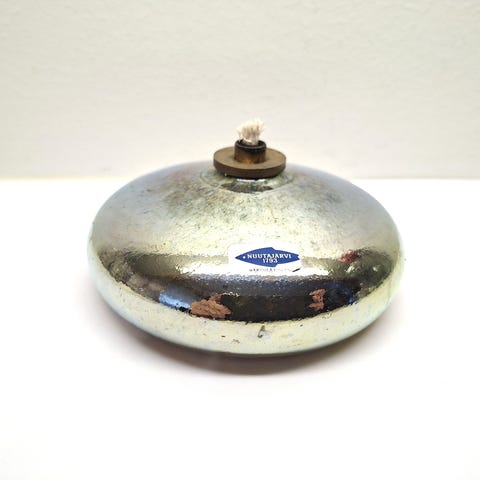 Nuutajärvi Vesuvius öljykynttilä lasia . Korkeus 5 cm ja halkaisija 13,5 cm. Singneerattu O.Toikka Nuutajärvi öljylyhty Oiva Toikka . Ehjä.