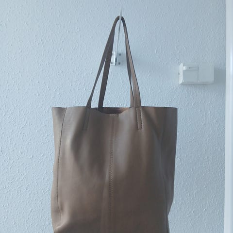 Hieno A+more kassi kauniista paksusta ja kuvioidusta nahasta. Väri haalea keltainen. Nahkalaukkuun mahtuu hyvin läppäri ja paljon muutakin. Sitä on tukeva kantaa olalla, sillä laukussa on leveä kantohihna.