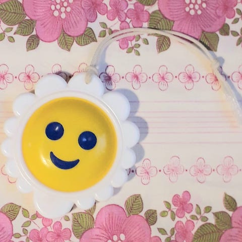 Vanhat helistimet, joissa toisella puolella on peili. Tehomuovi Oy:n valmistama, eli sama kuin Hymynaama / Paapu helistimen. Ajan tuomaa kulumaa.