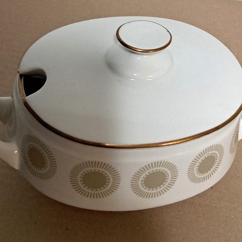 Lisäksi löytyy kannellinen soppakulho, kannellinen kastikekulho ja kannu, tiedot eri-ilmoituksissa.