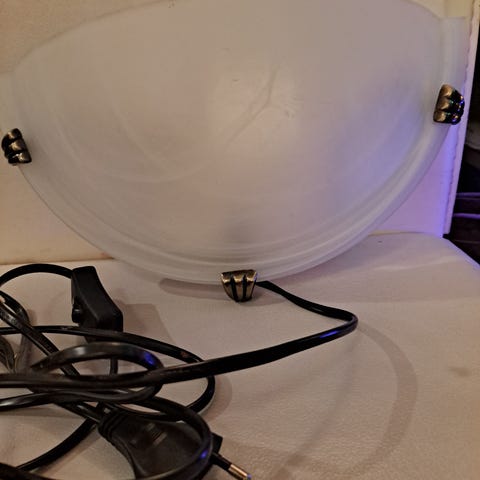 Kuvan mukaiset seinään kiinnitettävät valaisimet. Molemmissa on pistotulppa ja kytkin johdossa.