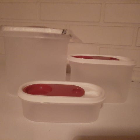 Erilaisia Tupperware Kansia, ehjiä.