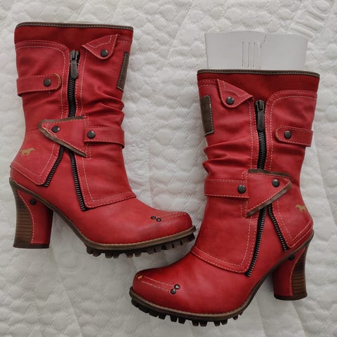 Käyttämättömät vihreät Mustang-merkkiset nahkasandaalit nilkkaremmillä. Kengissä on käytetty mokkanahkaa ja pintanahkaa, myös kengät on vuoritettu nahkalla. Nilkkaremmissä on tarrakiinnitys. Tukevat kumipohjat. Ranti on tikattu, ei vaan liimattu niinkuin halvoissa kengissä.