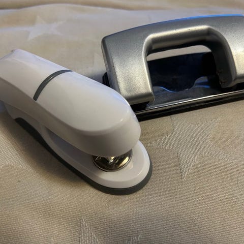 Toimistotarvikkeita: rei' itin ja nitoja. Yhteensä 4 eur. Sopimuksen mukaan nouto Herttoniemenranta tai kantakaupunki.