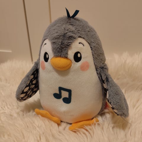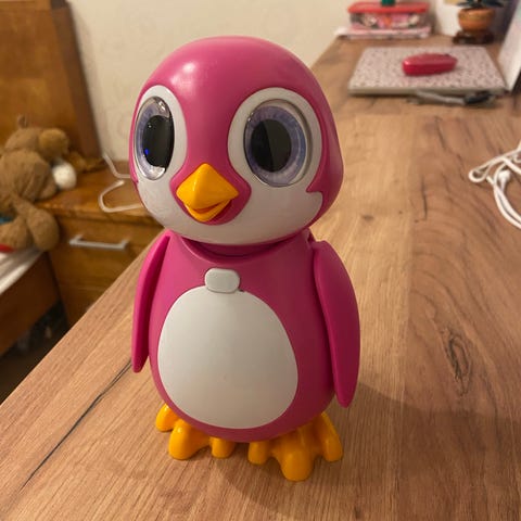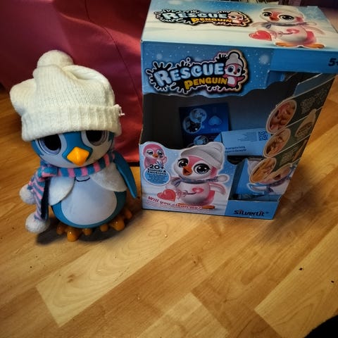 Pingviini, joka on n. 11 cm korkea, muovinen lelu. Pientä kulumaa tullut leikeissä, mutta on ehjä. Sen voi hakea tai voin lähettää.