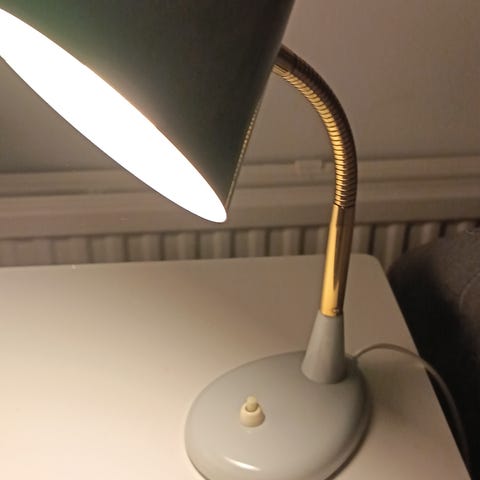 Myydään vanha iso pöytävalaisin halkaisija vähän yli 30 cm korkeus noin 60 cm. Hyväkuntoinen varjostimessa pieni musta piste yhdessä kohtaa joka näkyy kuvassa