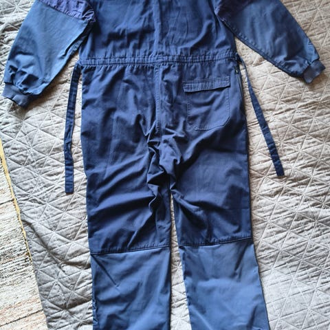 Nappikiinnitys. Edessä 2 rintataskua, jossa toisessa vetoketju. Lisäksi 2 sivutaskua, reisitasku ja takatasku. Lisäksi lenkitys vyön käyttämiselle.