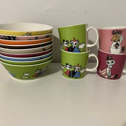 Arabia muumimukit & muutama kulho.