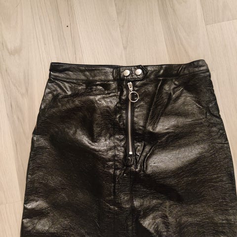 Zaran keinonahkainen hame. Täysin ehjä, kerran käytetty. Edessä taskut, vetoketju ja nappi. Hieman rypyssä, sillä ollut viikattuna kaapissa jonkin aikaa. Suoristuu kyllä helposti.