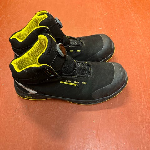 Pari kertaa pidetyt, kokoa 44 olevat miesten turvakengät, myydään tarpeettomana, mmm.