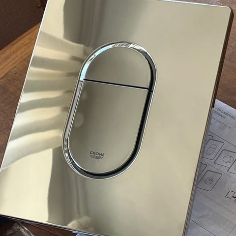 Tarpeettomana myydään, toisen värin tieltä väistyneen, Grohe - seinäteline WC:n huuhtelupainike Skate Air valkoinen, pysty.