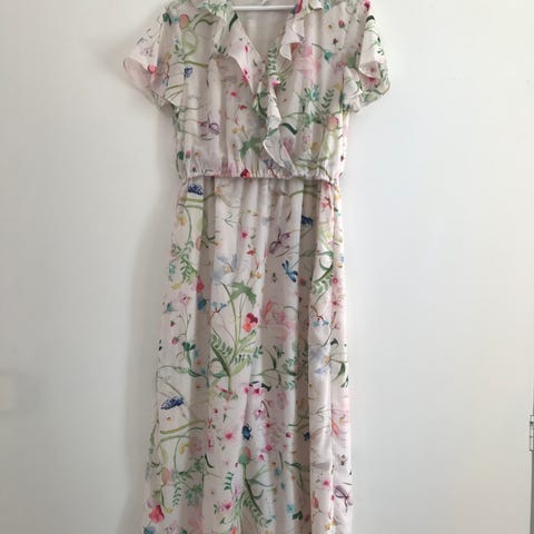 Hengittävää puuvillaa. Kauniin pitsipintainen ja kellohelmaimen Lindexin mekko. Aivan ihana mekko, joka käy juhlavampaankin käyttöön asustettuna. Ostin imetysmekoksi mutta itselle oli ikävä kyllä vauvan jälkeen liian pieni.