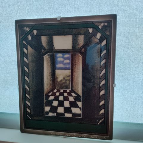 Hienokuntoinen Heljä Liukko-Sunströmin pankkisali seinälaatta, ei halkeamia tai lohkeamia, tilaustyö SYP - Suomen yhdyspankille, mitat 25cm x 20,5cm.