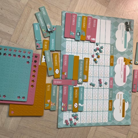 Myydään uudenveroinen, ihana magneettinen palkintotaulukko. Näitä löytyy 3kpl, 18euroa/ 1kpl. Jos tarvitset työkalun jolla lapsesi oppii ja tottuu tekemään läksyjä, pesemään hampaat, käymään nukkumaan, pesemään kädet, pukemaan vaatteet, keräämään lelut jne... tämä on täydellinen työkalu. Palkintoina mm. peliaikaa, leffa, popcornit, matka, lahja jne... Taulukkoon mahtuu yksi kokonainen viikko ja neljä tehtävää joista palkitaan hymynaamalla ja viikonlopuksi onnistuneesta viikosta saa palkinnon. Sisältää taulukon, magneetit ja poispyyhittävän tussin. Savuttomasta kodista. Postikulut 9euroa.