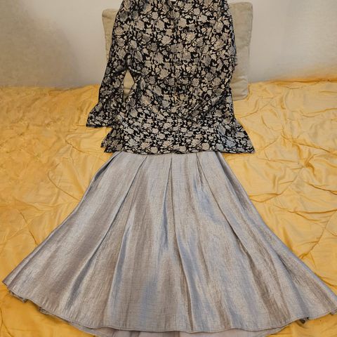 - mitat: vyötärö: n.73cm, pituus: 63cm ja helman leveys, helman alareunasta: 180cm