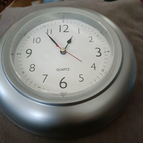 Mustavalkoinen muovinen seinäkello. Ø 24 cm Isot, hyvin näkyvät numerot. Hyvä vaikka vanhuksen asuntoon.