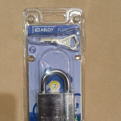 Riippulukko Abloy PL318, myyntipakkauksessaan.