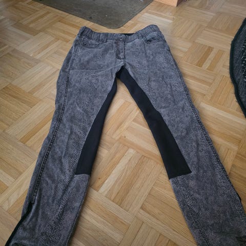 Jodhburg lahkeiset Jackson Wear ratsastushousut, joissa kokopaikat. Edessä vetoketjulliset taskut ja takataskuissa nepparilliset läpät. Koko 42. Mitat: vyötärö 86-94 cm, haarasta lahkeeseen 73 cm.