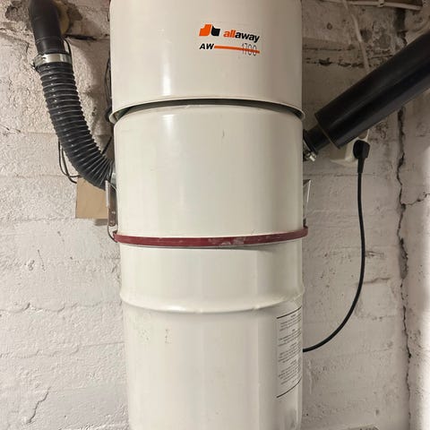 Käyttämätön Allaway Duo keskuspölynimurin keskusyksikkö.