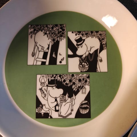 Arabia kaksipuolinen vihreä pikkumyy muumilautanen