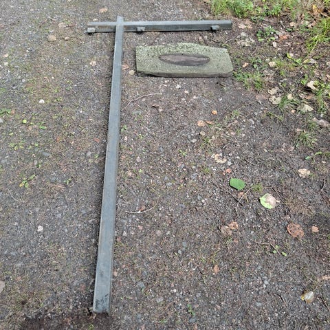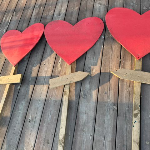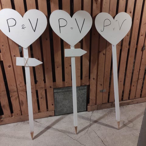 Varren pää "teroitettu", joten helppo lyödä tien pientareille! Kyltin koko korkeus: 155cm ja sydämen koko: n. 50cm leveä ja 43cm korkea (yläkaarista kärkeen).