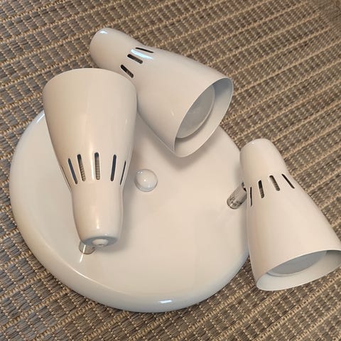 Hyväkuntoinen toimiva spottivalaisin. Leveys 80cm ja keskikohdan halkaisija 10cm.