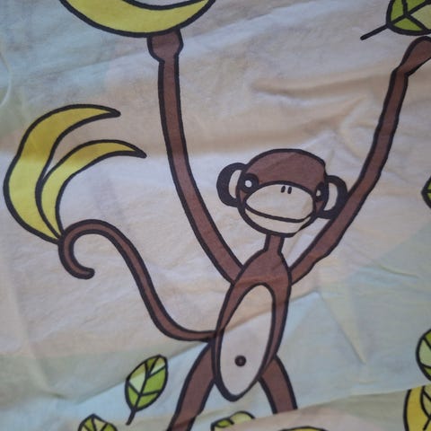 Finlaysonin Aappa apina pussilakana ja tyynyliina.Koot 160x110 ja 60x40.