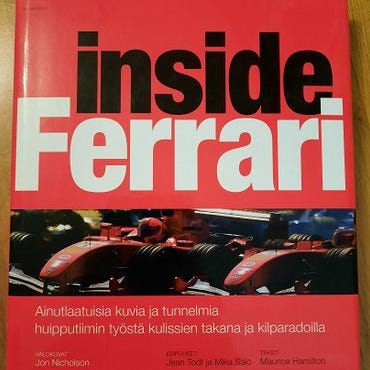 Inside Ferrari kirja, kuvanmukainen, siisti ja puhdas.