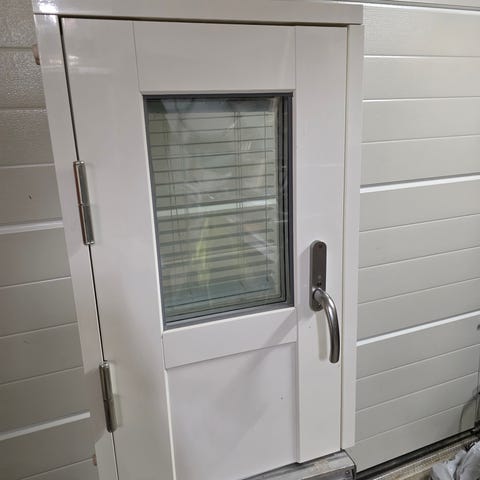 mitat korkeus 203,5 leveys 84,5 ikkunan mitat korkeus 101 leveys 67 lasi on lämpölasi väri ruskea ilman karmia. ikkunassa on sälekaihdin.