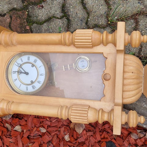 Seinäkello, puinen, avaimella vedettävä koneisto