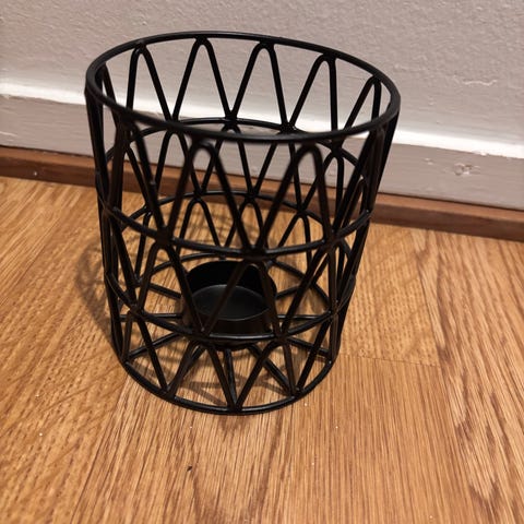 kuppi. Sininen tuikku mukaan. Värillinen tuikku heijastuu kivasti. Leveämmästä kohdasta halkaisija n.17.5cm.