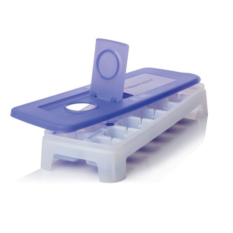 Kätevä kannellinen jääpala-astia, jossa joustava pohja.