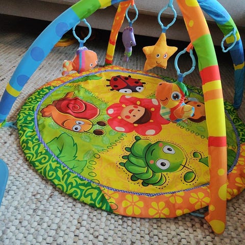 Myydää uusi, ihana Ks Kidsin tunnelilla ja roikkuvalla lelulla varustettu puuhamatto. Sopii hyvin juuri liikkumaan oppineelle lapselle. Pehmeällä matolla on mukava maata ja mattoon kuuluva pop up -teltta muodostaa jännittävän tunnelin jonka läpi lapsi voi ryömiä. Matossa on kaunis kuvio joka koostuu väreistä ja numeroista. Teltassa roikkuva lelu kiinnittää selällään makaavan lapsen huomion. Matossa on myös mitta-asteikko lapsen kasvun seuraamiseen. Maton koko: 48 x 119 cm Tunnelin koko: 44 x 55 x 49cm. Savuttomasta kodista. Postikulut 14,50euroa.