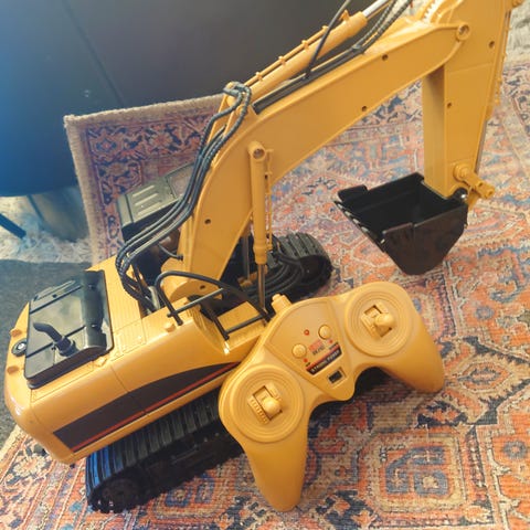 Myydään kaukoohjattava kaivinkone. (ohjain kiinni johdolla kaivinkoneeseen) Toimii pattereilla. Sähköisesti voit ajaa autoa ja kääntää ohjauskoppia. Kauha ei sähköinen.