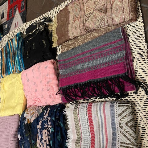 Lajitelma huiveja/kaulaliinoja, 5,-/15,-kpl.