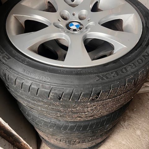 E60 mukana tulleet vanteet renkailla 4kpl, pari melko sileää etenkin sisäreunasta, parissa vähän enemmän pintaa, mutta pompottaa vähän silti, olisko jo runkovikaa renkaissa vai epätasapainossa (yhdessä ei ainakaan ollut ainuttakaan painoa...).
