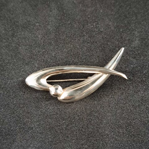 Kultasepät Salovaaran valmistama upea hopeinen rintakoru alkuperäispaketissa vuodelta 1965.