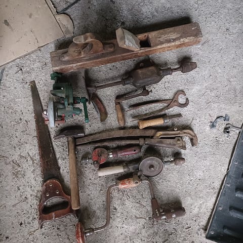 Kuvan mukaiset vanhat käsiporat yhteishintaan. Lähetys onnistuu, jolloin kulut lisätään.