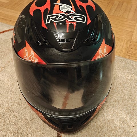 Rxa merkkinen kypärä. Musta visiiri ja hyvät ilmanotto säädöt. Hyvä kuntoinen