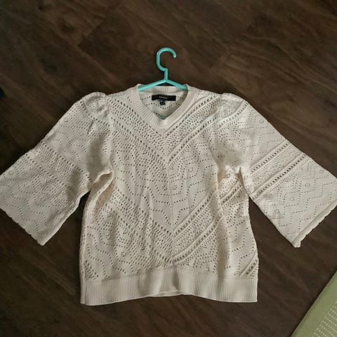 Naisten valkoinen pitsineuletakki 100% puuvillaa. Koko M, jossa on reilun pituiset hihat.