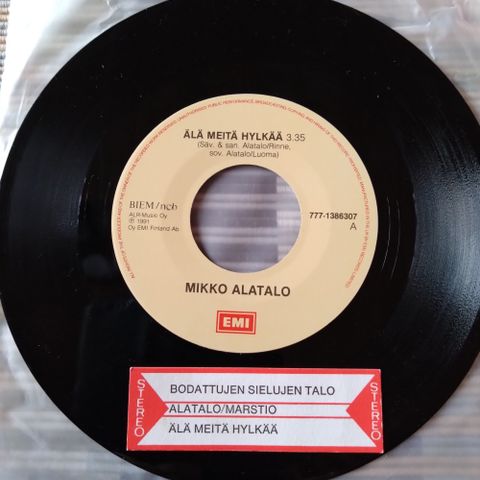 Uudenveroinen single,ei kuvakansia,jukeboxlappu mukaan,toim.kulut ostajalle.