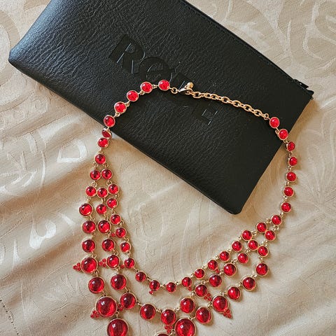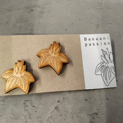 Myydään puusta valmistettu näyttävä, oranssinen pukeutumiskoru.