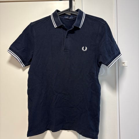Myydään Fred Perry valkosiniraidallinen pikeepaita. Koko S.