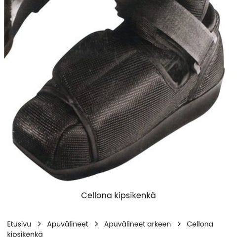 Myydään hoitokenkä, koko M sopii 39-42. Käytetty hallux valgus -leikkauksen jälkeen. Jälkine on symmetrinen ja sitä voi käyttää molemmissa jaloissa. 30 euroa. Myymälässä hinta oli yli 95 euroa.